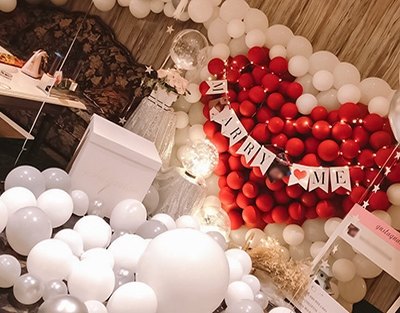 在KTV求婚也是很难忘浪漫的一件事情,布置白色气球墙和爱心造型气球飘满整个屋子的氦气球非常惹人爱